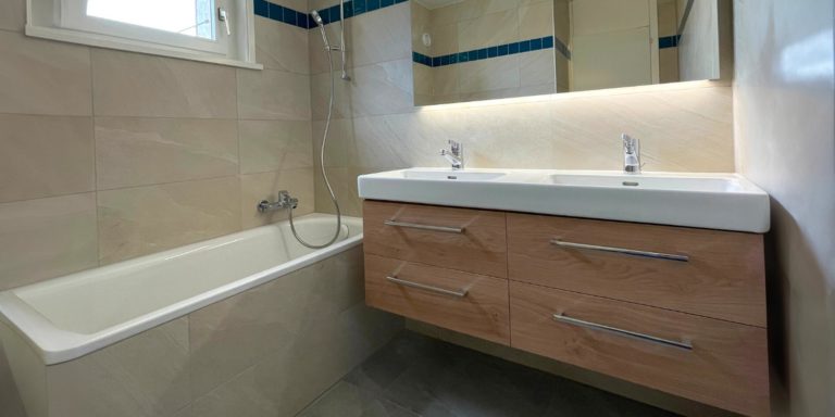 Rénovation: douche à l’italienne, lavabo et double vasques