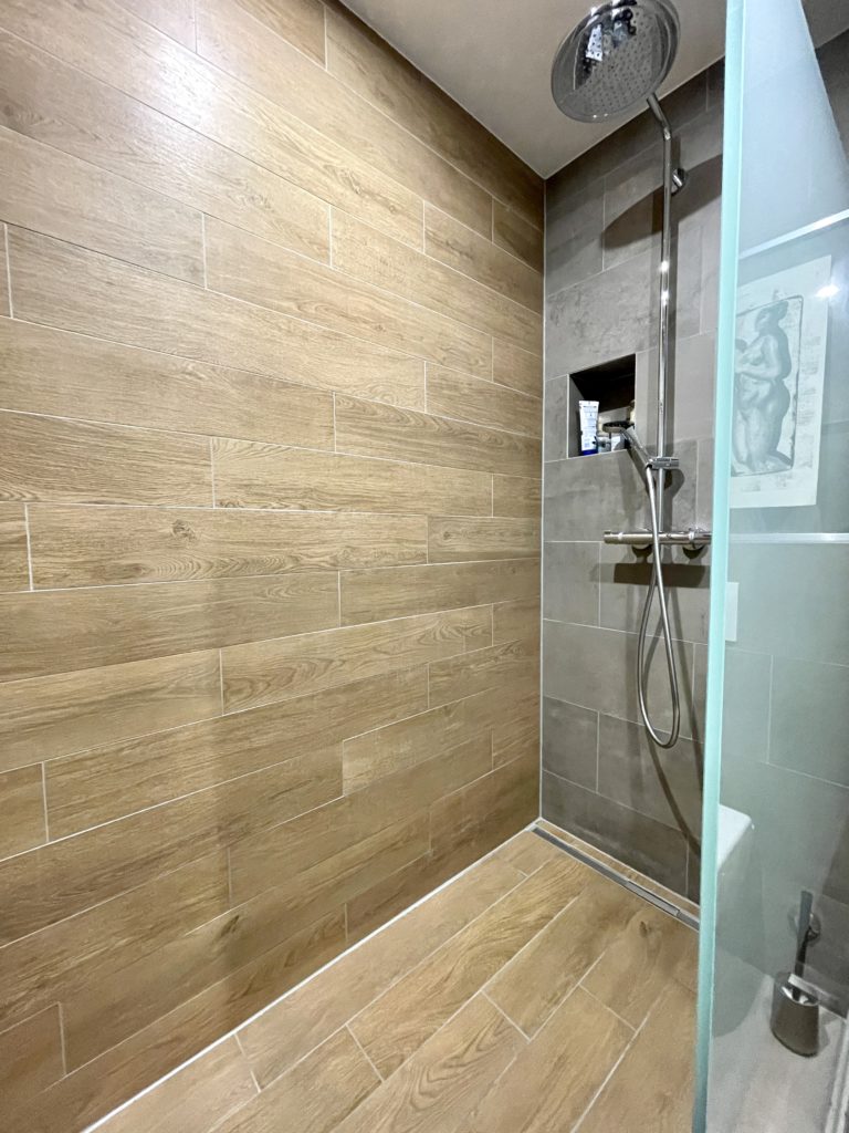 L’expertise de Grosch dans la rénovation de salles de bain se manifeste à travers ce projet par une attention méticuleuse aux détails, une sélection rigoureuse des matériaux et une exécution impeccable, garantissant ainsi que chaque élément, de la douche à l’italienne à la double vasque et au WC séparé, contribue à créer un environnement à la fois pratique et esthétiquement plaisant.