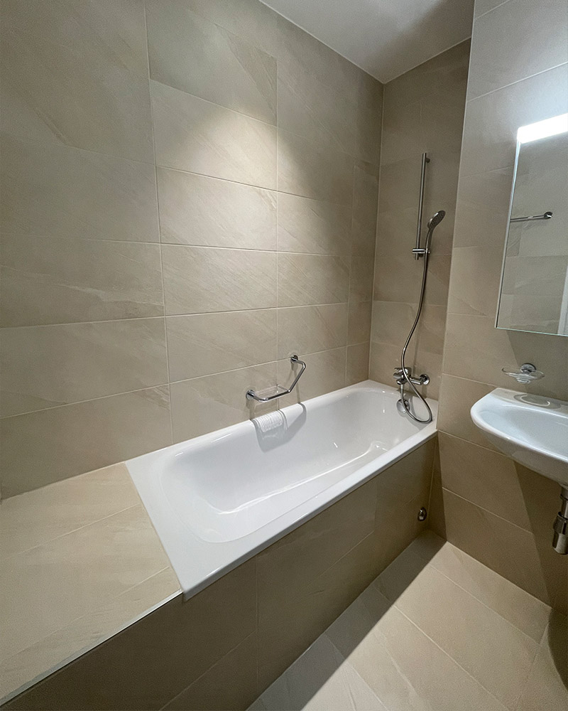 L’approche adoptée pour cette rénovation a inclus l’installation de nouveaux équipements sanitaires, l’optimisation de l’éclairage et l’utilisation de couleurs et de textures qui agrandissent visuellement l’espace. La sélection d’éléments modernes et économes en énergie a également été une priorité, afin de garantir une salle de bain durable et respectueuse de l’environnement. Cette rénovation a non seulement amélioré l’esthétique et le confort de la salle de bain mais a également contribué à augmenter la valeur globale de l’appartement, en faisant un espace plus attrayant et fonctionnel pour ses occupants.