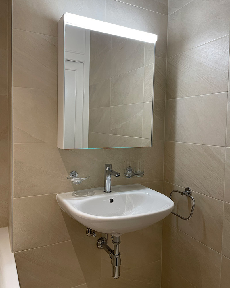 Dans le cadre d’une rénovation totale d’un appartement situé à Genève, une attention particulière a été portée à la rénovation de la salle de bain, visant à moderniser l’espace tout en optimisant sa fonctionnalité. Le projet s’est concentré sur la mise à jour des installations et l’intégration de solutions design pour transformer la salle de bain en un lieu à la fois esthétique et pratique. Les choix de matériaux et de finitions ont été guidés par le désir de créer un espace harmonieux qui s’inscrit dans le cadre global de la rénovation de l’appartement, reflétant les dernières tendances en matière de design intérieur.